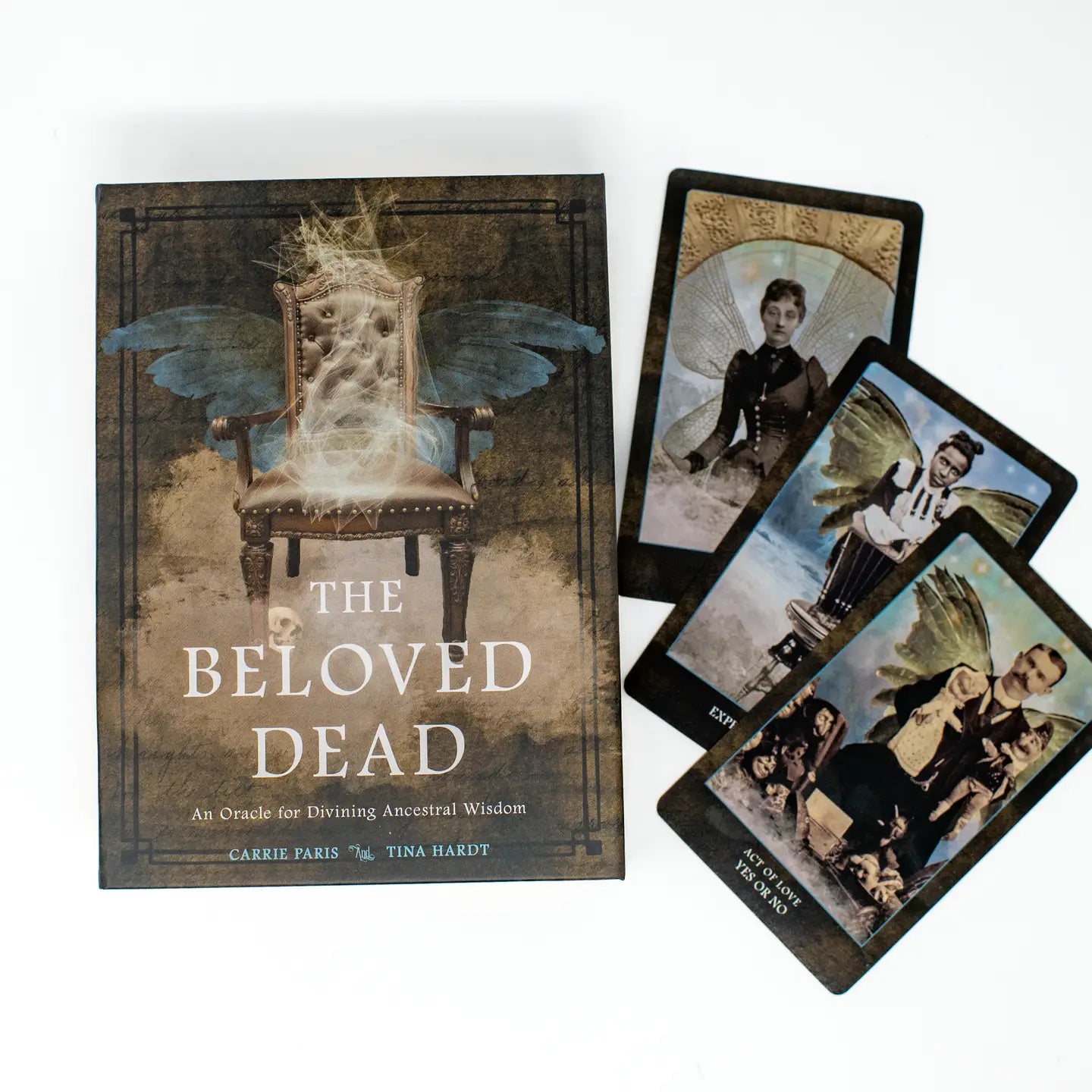 The deck includes 82 cards with vintage photographs depicting our collective family of ancestor archetypes. These are the voices of your protective and guiding ancestors, your Spirit Helpers. They’ve come together to reconcile the fellowship of the past, with the unlimited potential of the future. A special card called the “Spirit Throne” is used as a Seat of Honor, a sacred space within which to hold counsel with a particular spirit. The accompanying full-color guidebook provides an array of spreads to meet specific sorts of inquiry. While gender-specific pronouns are used in the descriptions of these cards, please use your intuition when connecting with the image on the card and develop a profile for its unique energy. At times, The Beloved Dead oracle cards will represent a specific soul, living or in spirit; at other times they may convey an experience, memory, event, or outlook, and always deliver a message related to the context of your question.